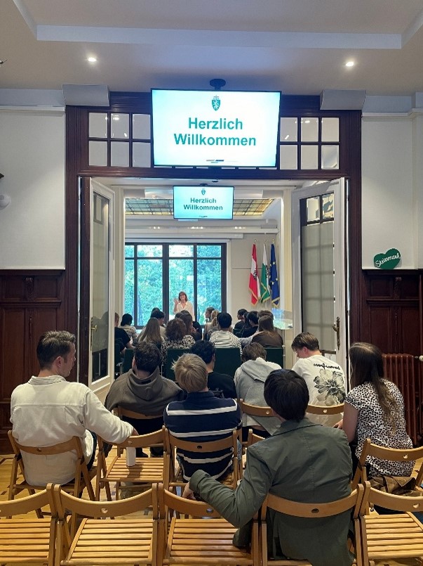 Am 14. April durften wir eine Schulklasse des BORG Feldbach mit 12 Schülerinnen und Schülern sowie ihre Partnerschule aus Gouda in den Niederlanden mit 15 Schülerinnen und Schülern in unserem Büro in Brüssel begrüßen. Die Begegnung war geprägt von wissbegierigen Fragen, spannenden Diskussionen und neuen Perspektiven - nach einem Vortrag über die Tätigkeiten des Verbindungsbüros Steiermark in Brüssel sowie über die EU-Institutionen. Ein zentrales Thema war der Klimawandel und die Rolle der Europäischen Union, worüber intensiv und engagiert diskutiert wurde.